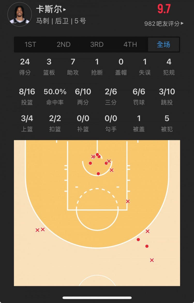 馬刺4號秀 斯蒂芬-卡斯爾 登場32.5分鐘