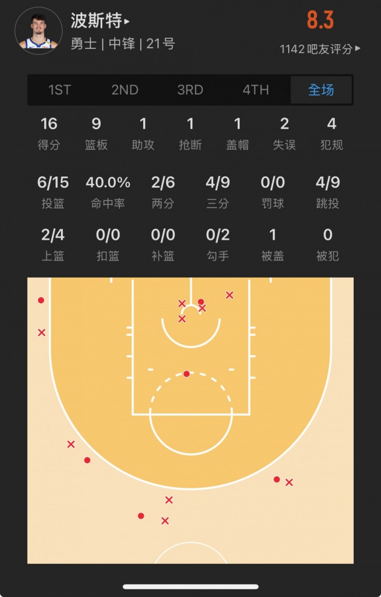 菜鳥丨卡斯爾16中8砍24分7助 埃迪7投7中17+9 勇士波斯特16分9板