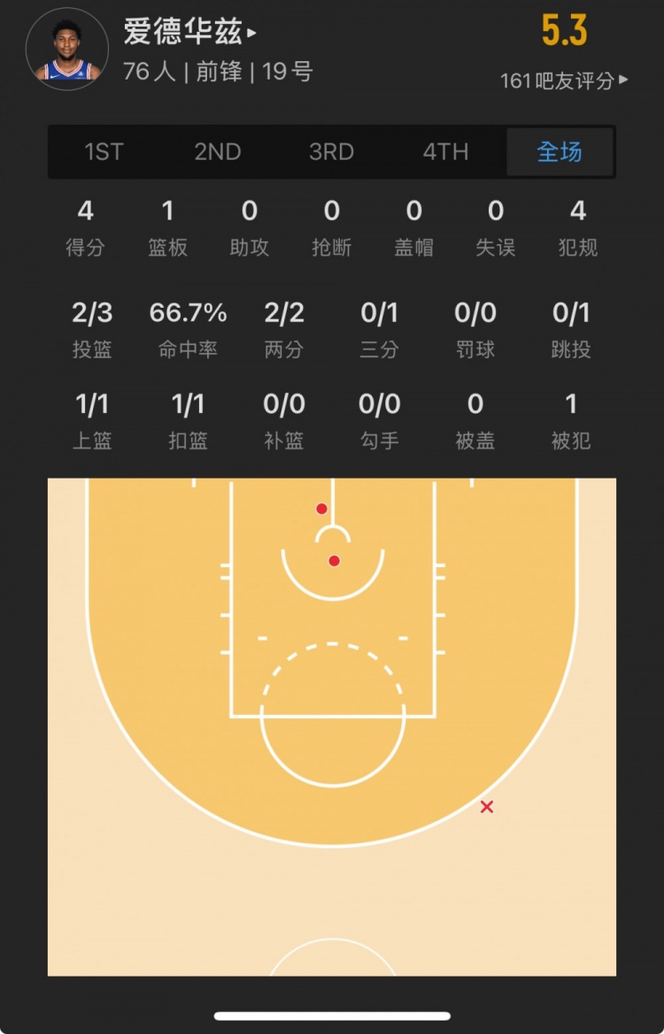 76人落選秀 賈斯汀-愛德華茲 登場15.7分鐘