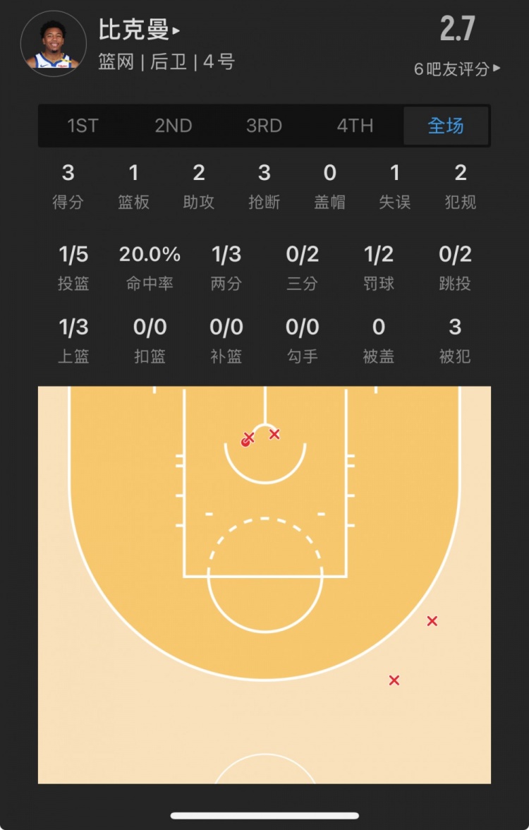 籃網落選秀 里斯-比克曼 登場26.9分鐘